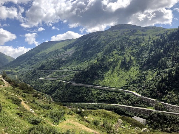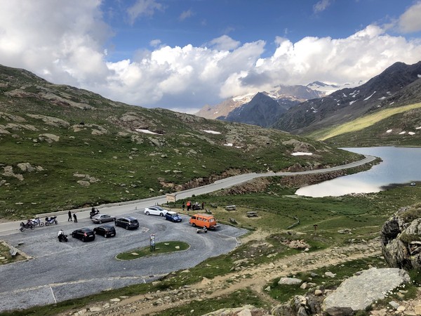 After overnight rest, the Day 3 route took us on a very non-direct path, first heading north past Interlaken, around the Brienz lake and then south towards Italy and Lago Maggiore.Views were enjoyed as we crossed the Grimsel pass. The pass itself was less enjoyable due to horrific traffic, mostly caused by an enormous amount of cyclists slowing everyone down to a crawl. The group rarely traveled in one big convoy, mostly we got split up in small-ish groups by traffic or unplanned photo stops.Only recharge on Day 3 at a petrol station in Brig, before climbing up the Simplon pass towards Italy. Up there, beautiful landscapes and amazing weather - we were really lucky on this trip. For the most part.Day 4 - break and excursion further south Link to heading