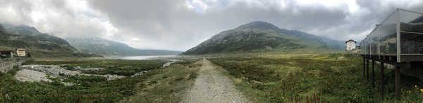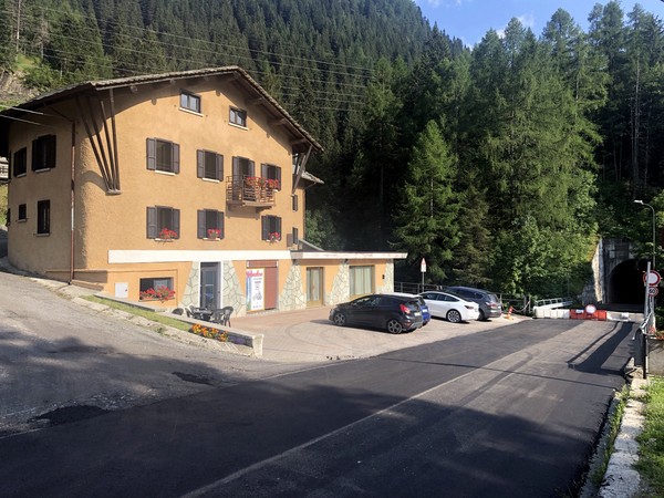 On Day 5, we headed north-east, crossing into Switzerland and back into Italy again near the end of the day.As we crossed the San Bernardino Pass, it slowly began to cloud over. Still made for a nice picture. Or several.Our overnight stay, quite literally at the end of the road - the tunnels and the rest of Spluga pass heading down were blocked off for construction. Allowed us a very quiet night at least. And a decent view downhill from the apartment, only a short walk away - note the waterfall on the right.In the evening we drove up the Spluga pass and had dinner at the top. Nice panorama of the wide nothingness there.While we were having dinner, the Model 3 recharged at a yet another free Type 2 spot down in Madesimo. The signs said it’s limited to 2 hours, but the charger stayed powered for all 3.5h that I needed to top the charge off to 90% and enjoy some pizza.
