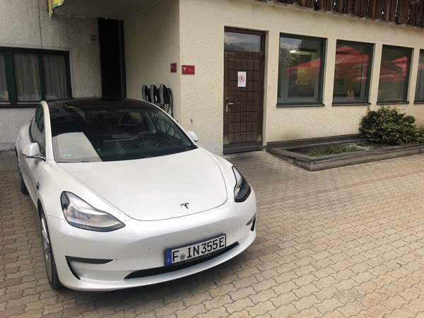 Our overall track was a little chaotic :) We did not touch any highways, the whole trip was on B-roads only, with dozens of mountain passes and other twisty roads. It all started in Reutte, Austria, just south of the German border where I arrived from…First charge after arrival: a Tesla destination charger at a hotel in Holzgau, over dinner. Weird setup with the 3 chargers on the corner… I guess two of them are really usable? I only needed one.Day 0 - from initial meetup in Austria to Falcade, Italy Link to heading