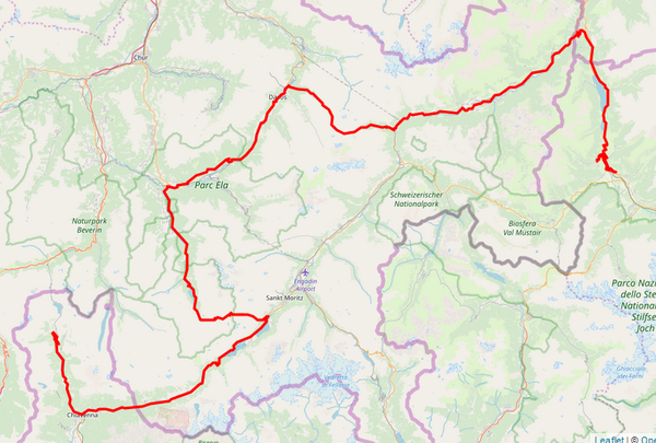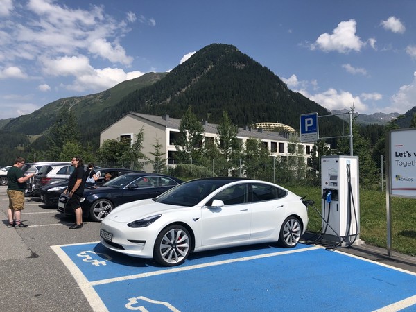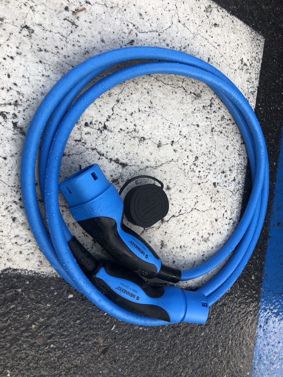 Next morning down in Livigno, picking up the car from its overnight charge at a local free Type 2 spot. A downside of overnight charging in Alpine weather: having to roll up and pack the wet charging cable.Day 2 - further west to Grindelwald, Switzerland Link to heading